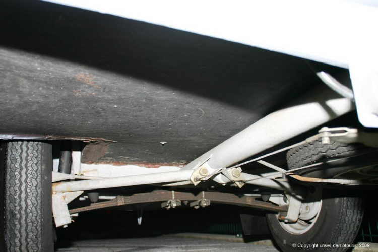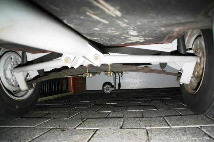 Das Fahrwerk, robust mit Querliegender Blattfeder und Stoßdämpfer serienmäßig. Viele Teile stammen von dem bewährten Trabi 601