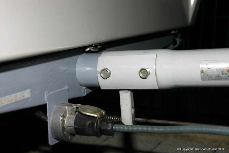 Ein Blick auf die Deichsel mit mechanischer Auflaufeinrichtung und Stützrad