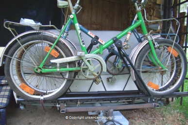 Hier seht Ihr den Probeaufbau mit den Fahrrädern. Der Träger ist noch nicht verzinkt.