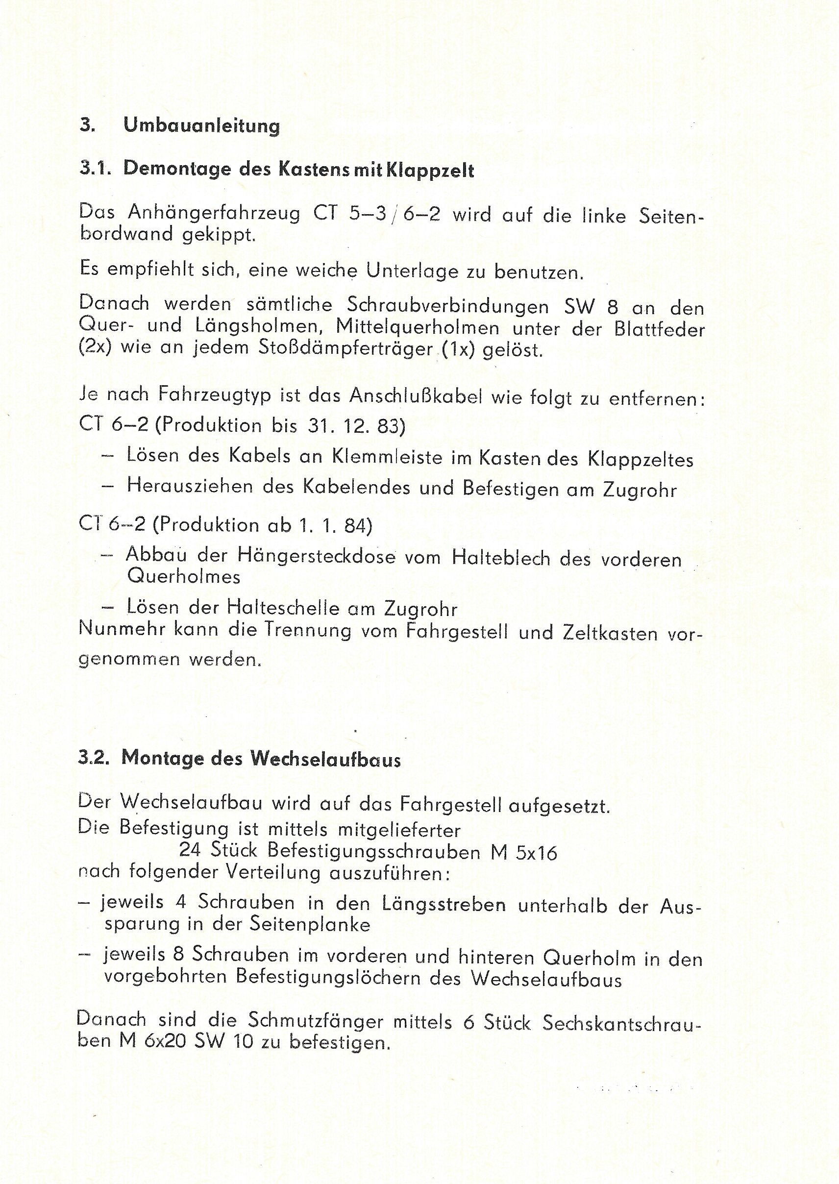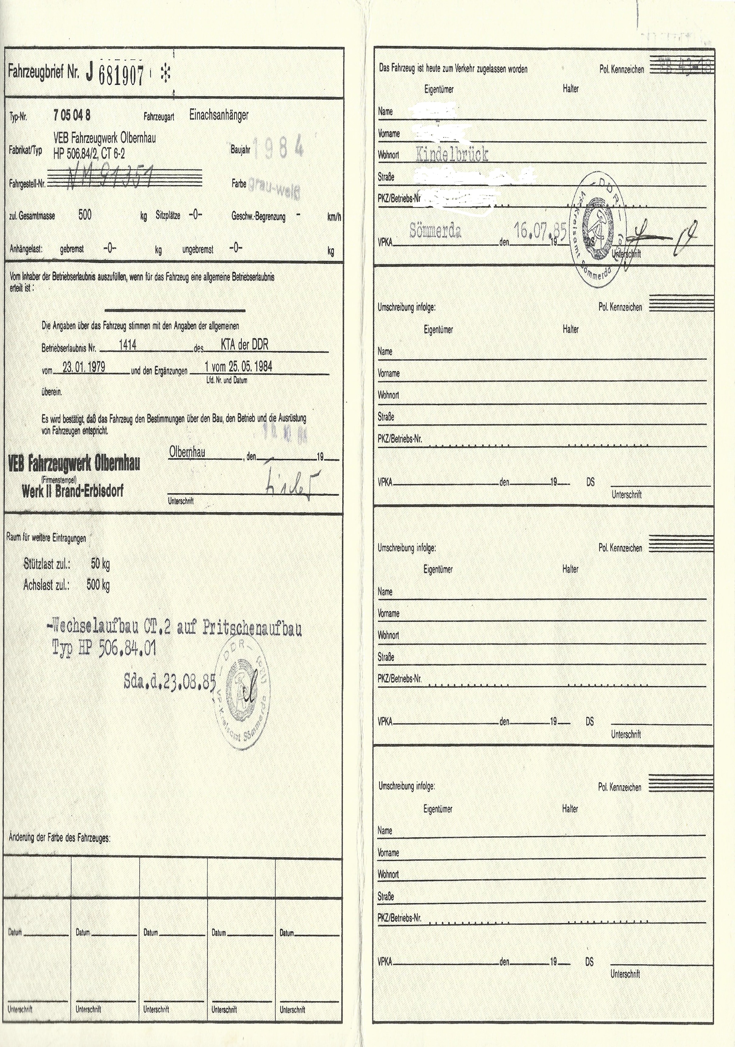 Die Kosten für diesen gesamten Umbausatz beliefen sich damals auf 850 Ostmark laut dem mir vorliegenden Kaufvertrag. Die Umbauanleitung zum Lastenanhänger